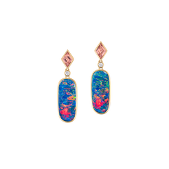 Our silver mosaic design set with a diamond center and hand etched. Three sapphire beads drop from each earring. Sterling Silver, .02 ct Diamond, Sapphire, Satin Finish, 20 mm x...