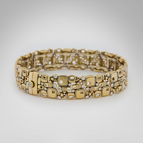 Alex Sepkus is out! Or, as he might say, Alex Sepkus is also not so out. In a world full of designers scrambling to turn fine jewellery into an offshoot of the fashion industry -- and therefore, by nature, attuned to the fad (it‘s called the rag trade for a reason) -- Alex remains so focused he never feels the need to chase anything. Why should he? His picture is big, like a magnificent mosaic; the components comprise detailing so small he and his workforce require microscopes to execute it, which is only the first contradiction from this designer.